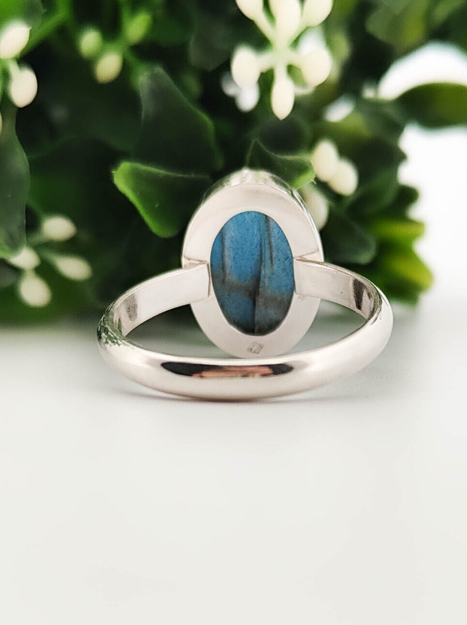 Bague en argent sertie d'une labradorite ovaleBague Labradorite – « Sérénité »