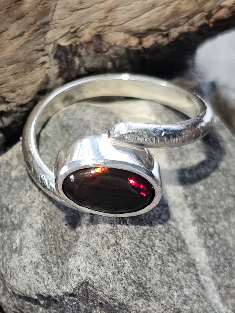 Cette bague en Opale noire de Delanta a été réalisée sur commande, c’est une bague en argent 925 sertie d’une Opale noire de Delanta de 1,7 carats de taille 52.