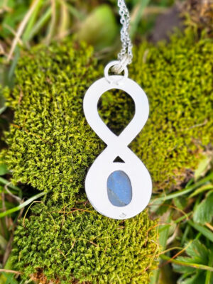 Collier en argent serti d'une labradorite en forme de signe de l'infiniCollier Labradorite – « Infini »